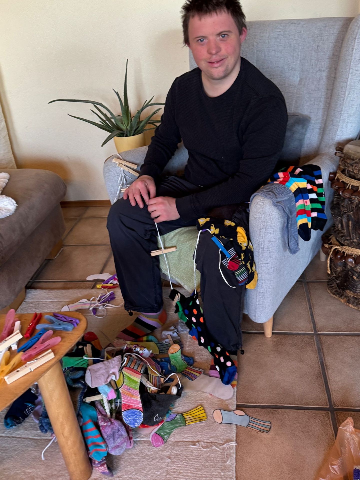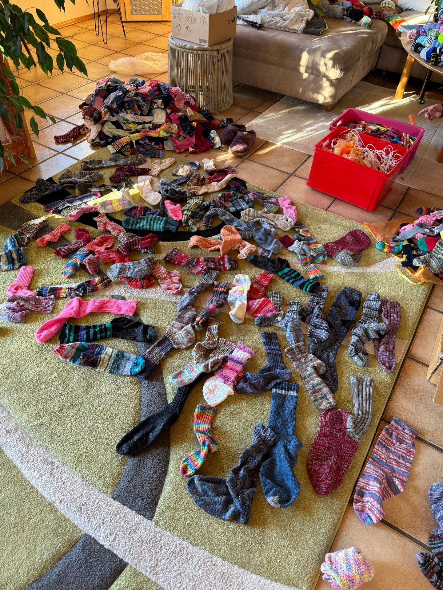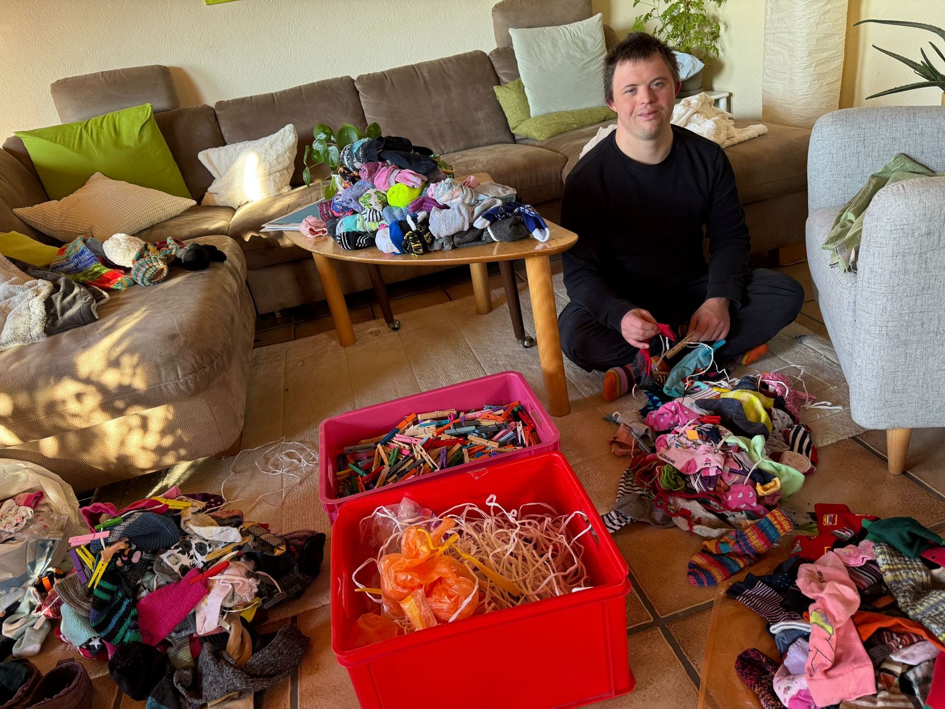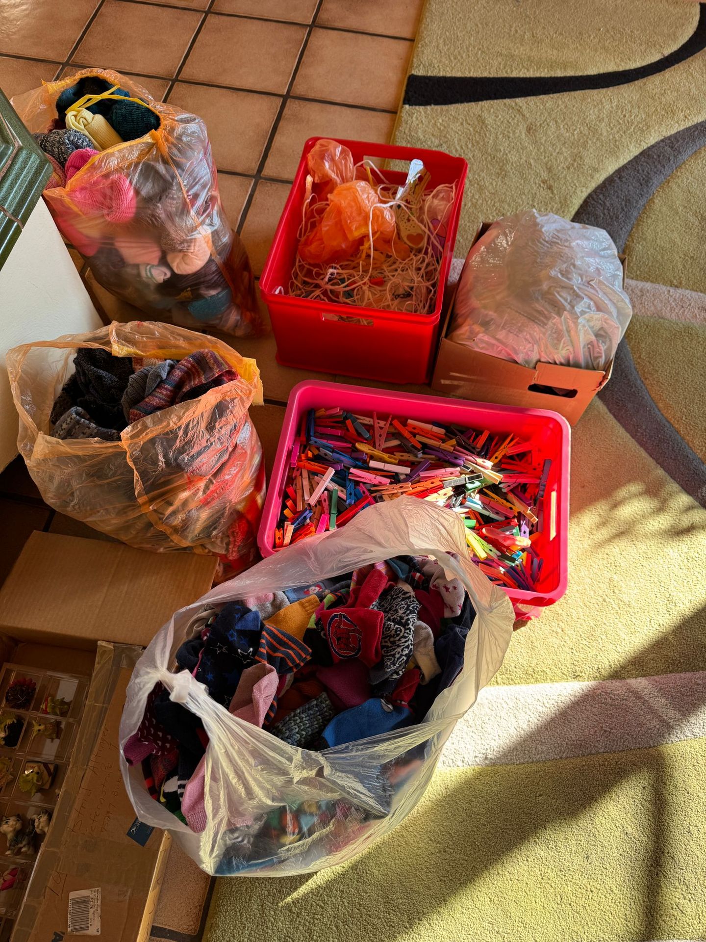 Heute haben wir einige Stunden damit verbracht zu sortieren. Wir heben für Deko Zwecke etwas auf, der Rest kommt in die Kleiderspende bzw. zu den Altkleidern. Dominic hat fleißig sortiert!